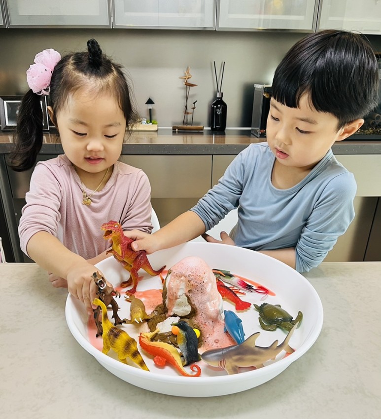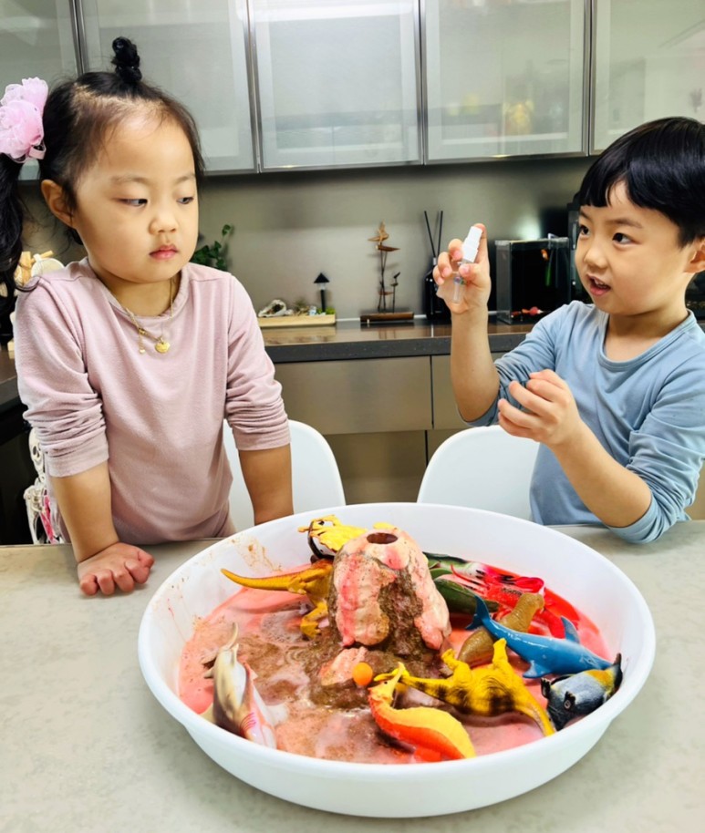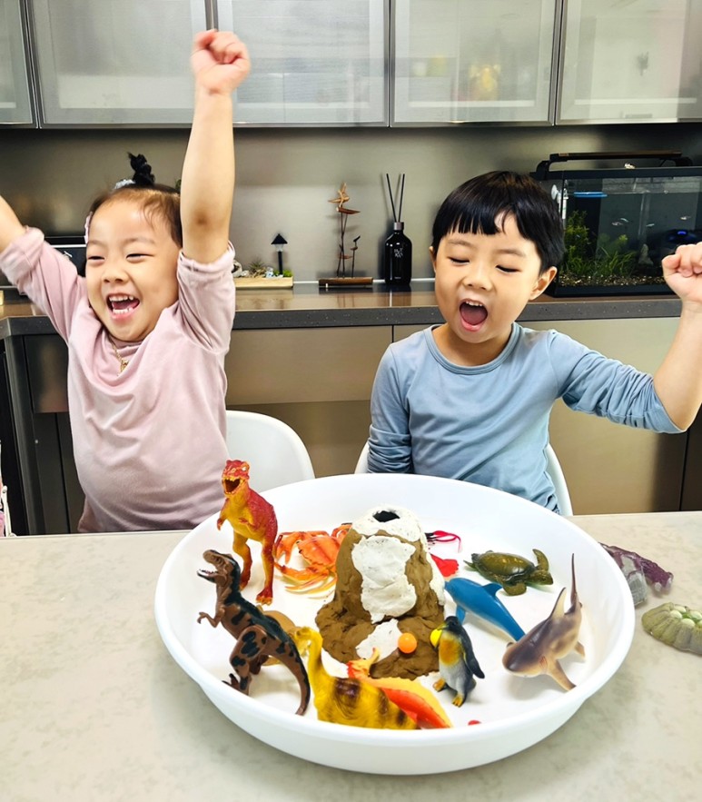 ▲가정보육을 하게 된 이유=코로나 확진자가 많아진 최근 연휴가 끝나 불안한 마음에 일일유치원을 등원시킨 적이 있다.청소와 뒷전으로 한 집안일을 하기 위한 어머니의 신중한 선택이었지만 하필 유치원에서 확진자가 나와 두 명의 공룡을 데리고 보건소에 가 PCR 검사와 격리 조치를 받은 적이 있다.엄마의 안이한 선택으로 아이들이 힘든 시기를 겪은 것 같은 미안함에 당분간 가정보육을 하기로 결정했다.