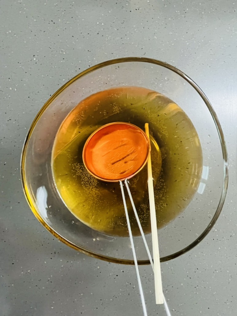 아 맞다! 한번 쓴 국자는 바로 물에 담가두면 금세 사용하기 편해져.