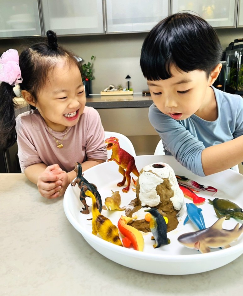 공룡들의 집에서의 흉내놀이는 당분간 계속될 것 같아.즐거움을 느끼며 배우게 해드리고 싶은 어머니의 욕심이자 소원이며 공룡들이 크는 데 자기 자신을 지킬 수 있는 무기가 되길 바란다.