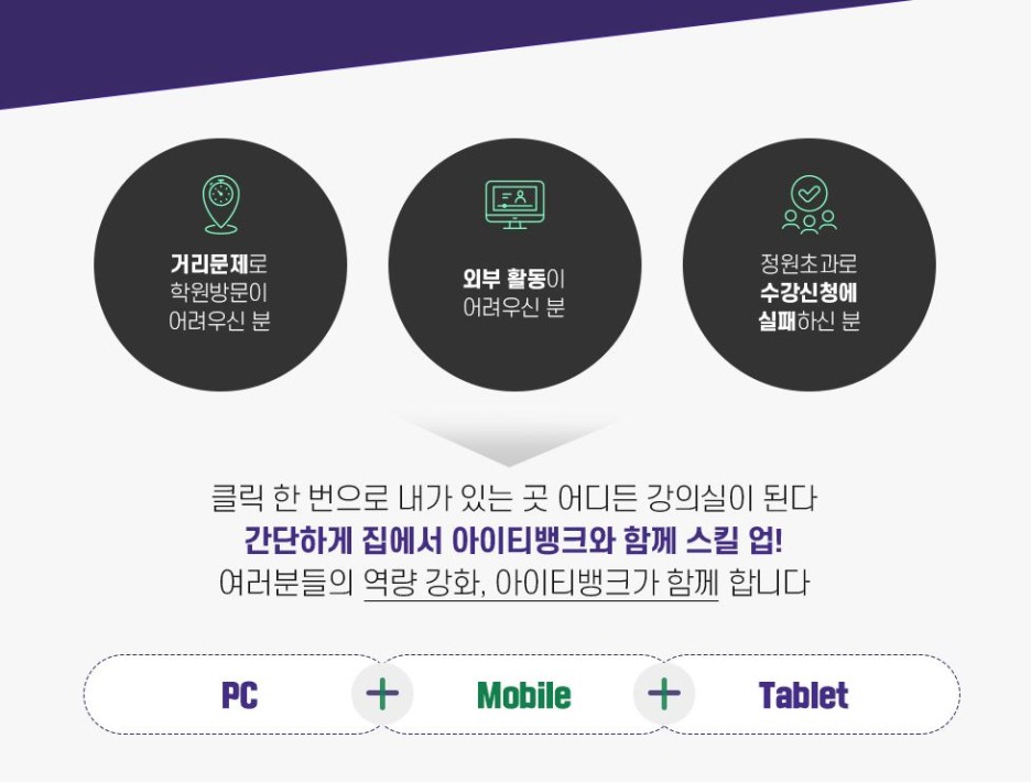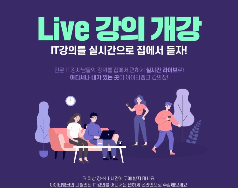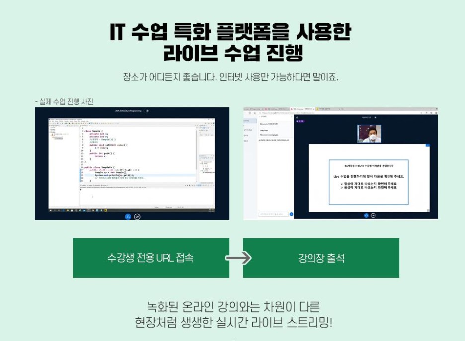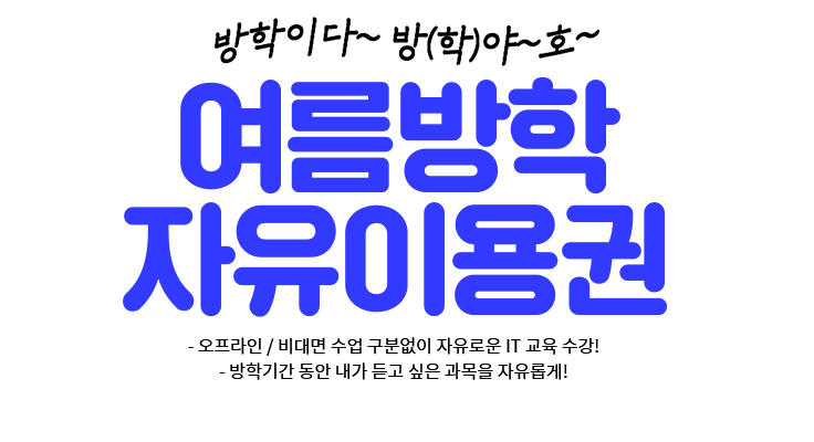 만약 학원 오프라인 수업이 거리 부담으로 힘들다면 비대해지면 실시간 라이브 교육에서도 실무 교육을 충분히 배울 수 있습니다.