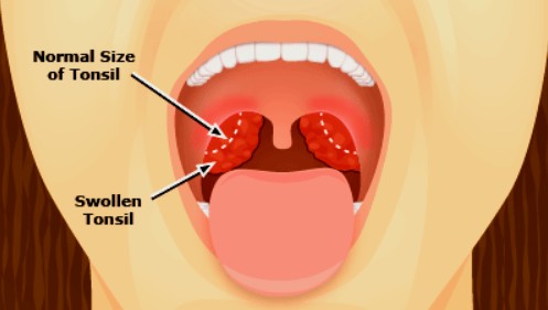 - 곪은 반점과 붉게 부은 편도선 – 침이나 음식을 삼킬 때 느끼는 목의 통증 및 이물감 – 부은 림프종 – 기침, 피로감 – 오한 및 발열 – 수면장애 – 인후통