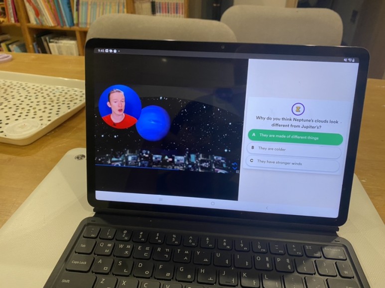 지노에게 앞으로 태양계에 대해 공부하겠다고 얘기하자 지노는 이제 다 안다며 잘난 척한다.