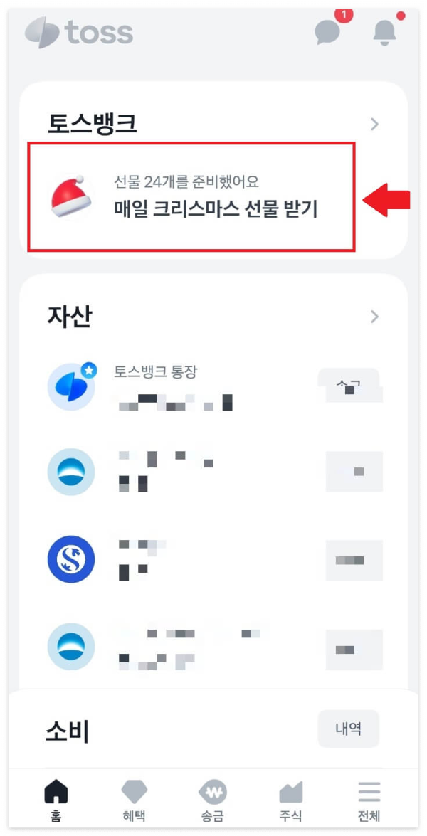 토스뱅크는 이자를 받기 위해 매일 들어가는 편인데 토스뱅크에서 즐거운 크리스마스 이벤트를 시작했네요.