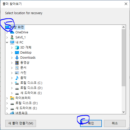 5. 저장할 폴더를 선택합니다.6. OK를 누르면 복구된 파일이 생성됩니다.