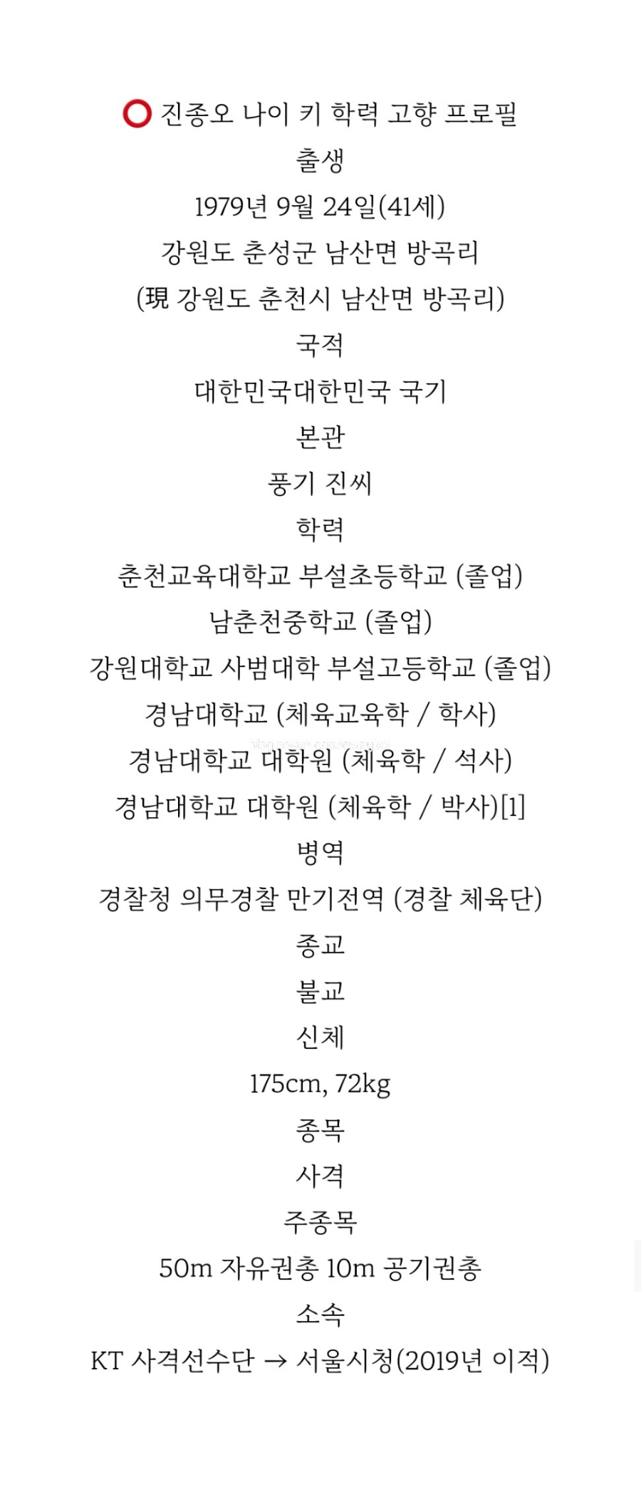 ⭕ 취이현택 나이프로필 1976년 1월 3일 학력 우천초등학교 원주중학교 봉의고등학교 건국대학교 대학원 졸업