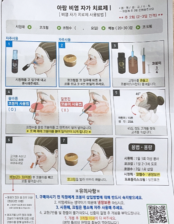 꼭 오시지 않아도 지금은 집에서도 콧물을 낼 수 있는 기구와 약을 처방받았습니다