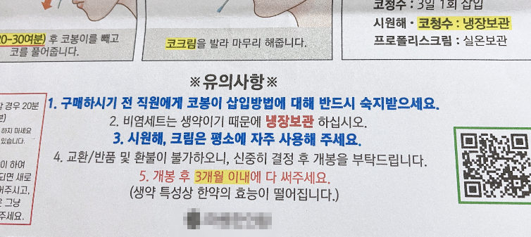 사용법은 간단하고, 매일은 아닌 격일정도 해주었더니 코가 편해졌습니다!