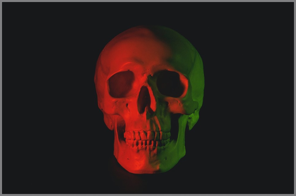 해골은 추한 외형일수록 위험표시 등에 부정적으로 사용됩니다.꿈에서도 악몽일 확률이 높지만!