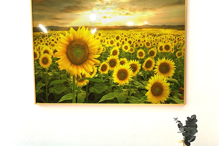해바라기꽃밭R 풍경화 그림 풍수 인테리어 액자 맑은 하늘에 노란 해바라기꽃밭이 예쁜 풍경화 인테리어 액자입니다.보기만 해도 아늑하고 따뜻한 기분이 느껴지는 것 같아요.금전운과 행운, 복을 가져다주는 그림으로 알려진 노란 해바라기 액자는 풍수 인테리어 소품으로 가장 활용하기 좋습니다.해바라기 그림 액자처럼 풍수에 좋은 그림, 돈이 들어가는 그림은 실내 공간에서도 잘 보이는 위치인 거실 인테리어나 현관 앞에 걸어두면 효과가 더 좋다고 합니다.화려함이 가득한 노란 해바라기 꽃밭 풍경화로 깨끗하고 멋진 실내 인테리어를 연출해보세요.좋은 기운을 가져다주는 해바라기 풍경화 액자이므로 부모님 선물이나 개업, 집들이 선물처럼 특별하고 센스 있는 선물용 액자로 활용할 수 있는 풍수 인테리어 소품입니다.홈 인테리어 액자뿐만 아니라 사무실, 나들이, 매장 등 다양한 상업공간에도 걸치기 좋은 해바라기 그림 액자입니다.