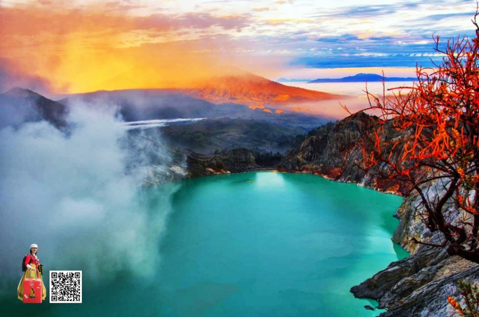 세계 최대의 산성화산인 화구호로 추정되는 인도네시아 카와이젠은 놀라울 정도로 청록색 물빛을 띤다.밝은 빛을 띠는 유황 침전물과 파란 불꽃이 규칙적으로 파열되는 모습을 볼 수 있는 매우 아름다운 관광지로 알려져 있다.