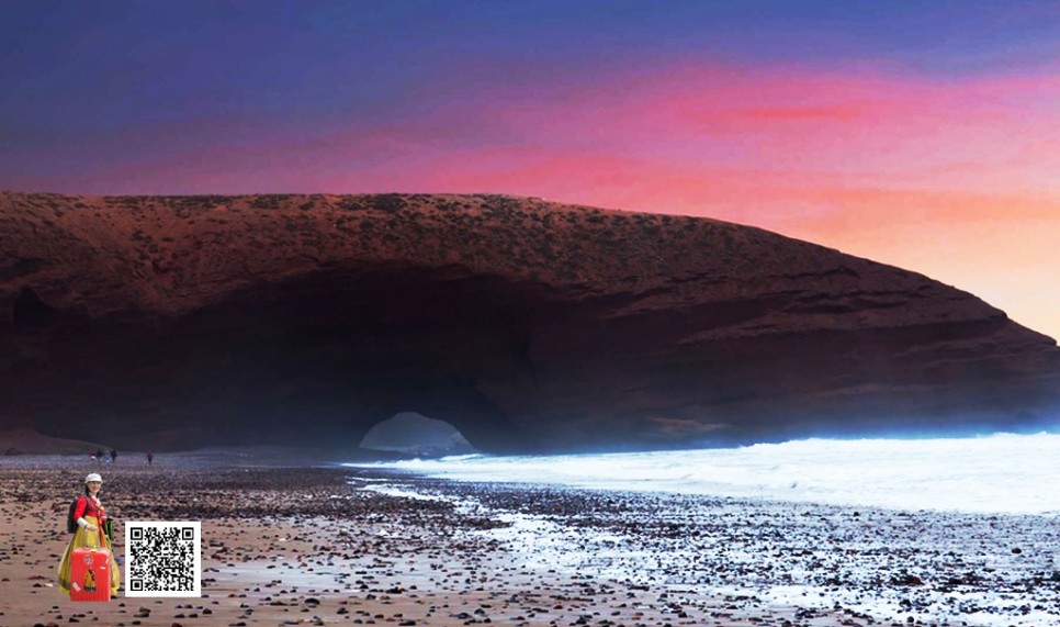 바닷물에 닳아 언젠가는 무너져내릴 아치형 사암 모로코의 레그질라 해변은 바람이 세고 바위투성이의 해변이지만 거대한 돌 아치 2개가 있어 관광명소가 되었지만 2016년 말 아치 하나가 무너지면서 지금은 하나만 서 있다. 나는 모로코의 레그질라 해변이 언젠가는 붕괴될 것이라고 믿고 있다