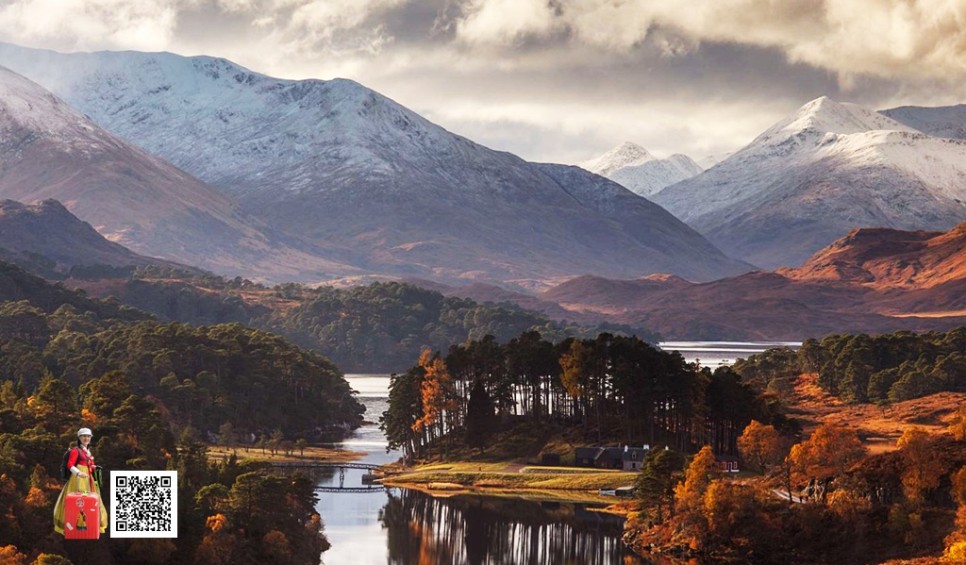 혼합림이 아름다운 스콧랜드 칸 그랑아플릭, 스코틀랜드에서 가장 아름다운 관광명소 중 하나로 호수, 산, 소나무, 자작나무 및 오크 혼합림으로 이곳은 도보여행자, 산악인 및 산악자전거를 타는 사람들에게 인기가 높은 관광지로 알려져 있다.