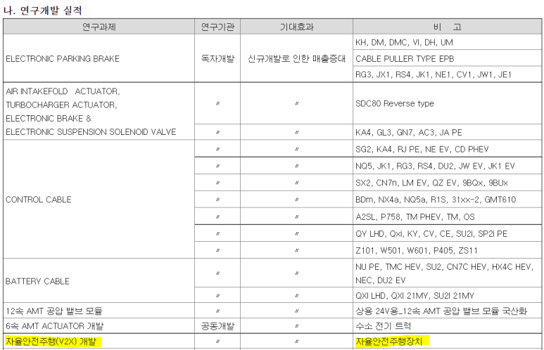 V2X는 사업보고서에 연구개발 실적에 오른 내용이긴 하지만 별 관심을 두지 않았던 안테나와 연결되지 않고 건너갔다. 홈페이지에 2023년 NEU(아이오니크 5로보택시에 탑재할 계획이라고 홍보하였다.