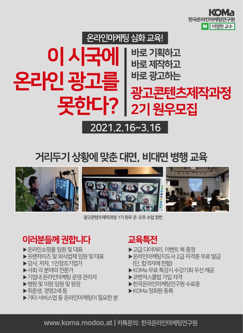 고려대학교 온라인 마케팅 과정에서는 혼자서도 광고 만들기가 가능하도록 광고 콘텐츠 제작을 직접 할 수 있도록 수업을 진행하고 있다.