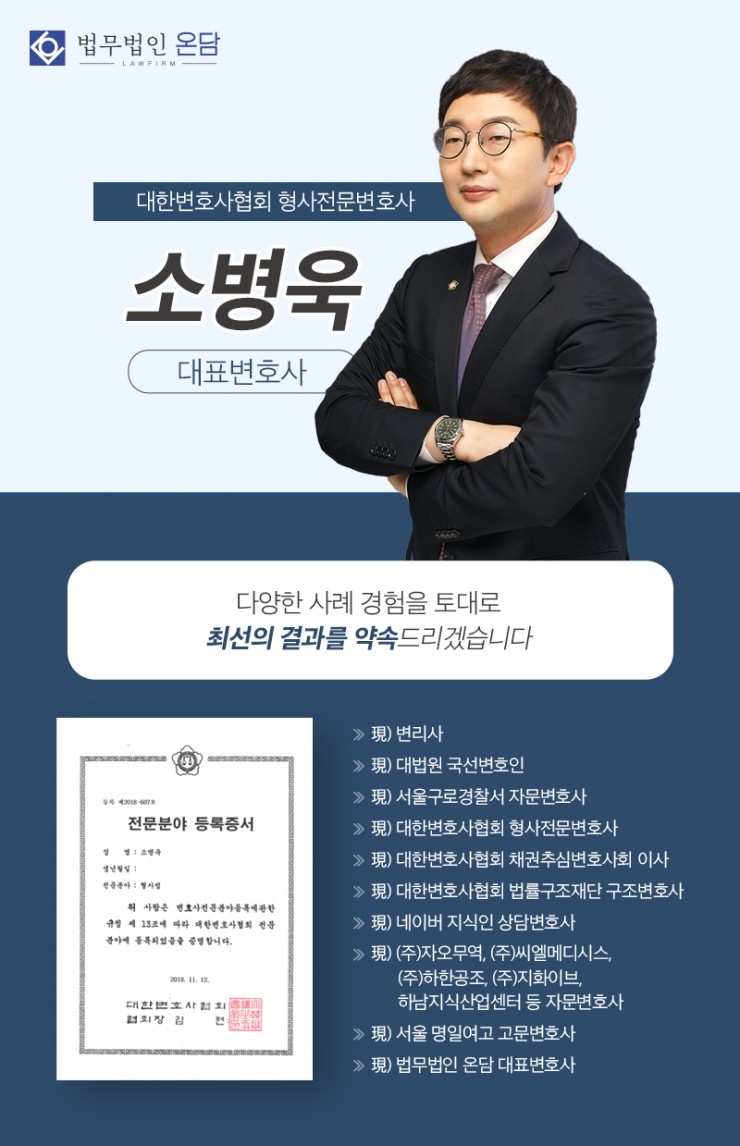 소병욱 변호사는 형사 전문 변호사로 수많은 소송 경험이 있기 때문에 상황에 대한 신속한 분석과 적절한 진단을 내릴 수 있습니다.