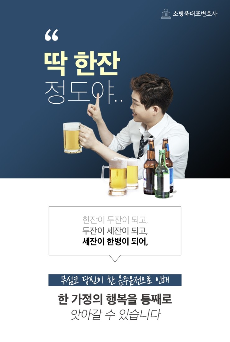 이런 수치는 사람마다 다르기 때문에 한 모금이라도 마셨을 때는 핸들을 잡지 않는다는 것을 명심하셔야 합니다.