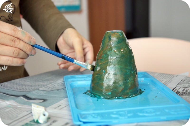 5. 생략해도 상관없지만 우리는 부족해서 색을 칠하기로 했다.(이케아무라 물감을 이용한다/그러나 화산 용암을 만들 때는 절대로 사용하지 않는다. 식초와 잘 섞이지 않아 수성물감에 비해 효과적이지 않음) 0_0