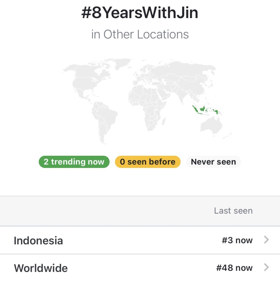 8 YearsWithJin was also tr ending Worldwide at # 48 and in Indonesia at # 3 as we celebrate 8 years since the release of Jin ‘ s first log