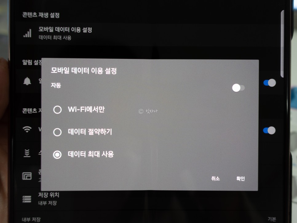 PC와 달리 모바일 넷플릭스 앱은 화질 설정이 어디에 있는지 한참을 찾았지만 사실 맨 위에 있는 콘텐츠 재생 설정에서 모바일 데이터 이용으로 하는 것이었습니다. 최대 사용으로 변경해 줍니다. 모바일에서는 상세한 화질 설정을 할 수 없었습니다. 인터넷의 속도는 초당 15메가비트 이상이면 되기 때문에 LTE 상태에서도 충분합니다.