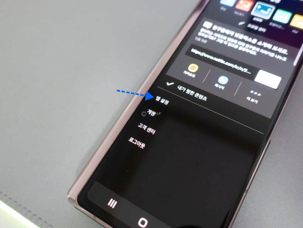 스마트폰에서 넷플릭스 앱을 실행한 후 오른쪽 상단 프로필 아이콘을 누르고 이렇게 나타나면 앱 설정을 누릅니다.